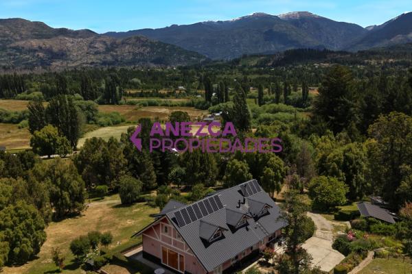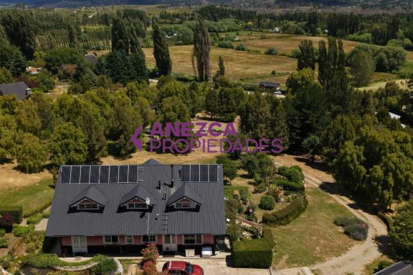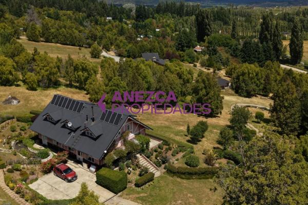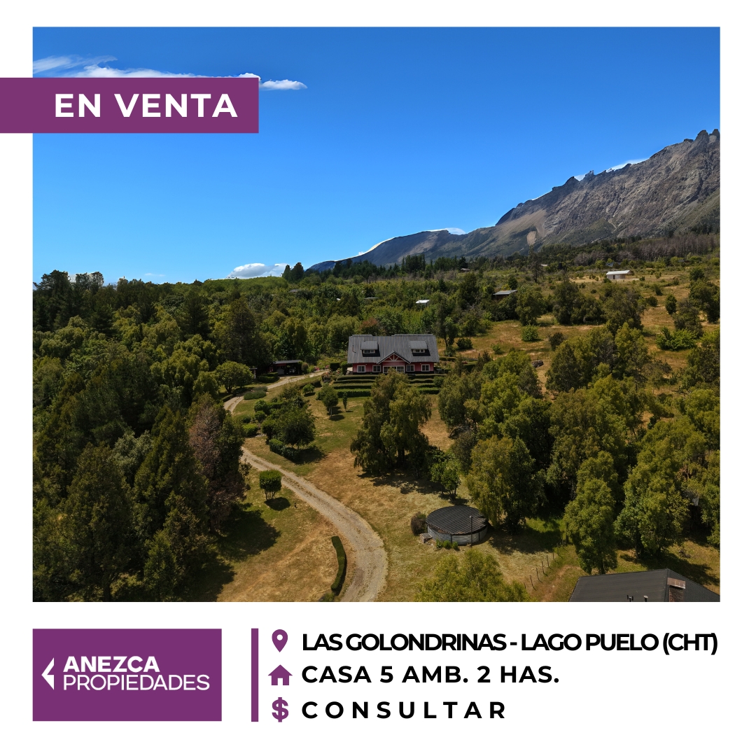 Se vende casa de 5 ambientes en Las Golondrinas, Lago Puelo, Chubut. Un hogar listo para mudarte y disfrutar: Cuenta con cochera para 2 autos, todos los servicios (Luz, Agua, Gas Natural) y un parque que despierta los sentidos, con varios arboles de la zona, frutales, un pequeño estanque de agua y un tanque australiano.