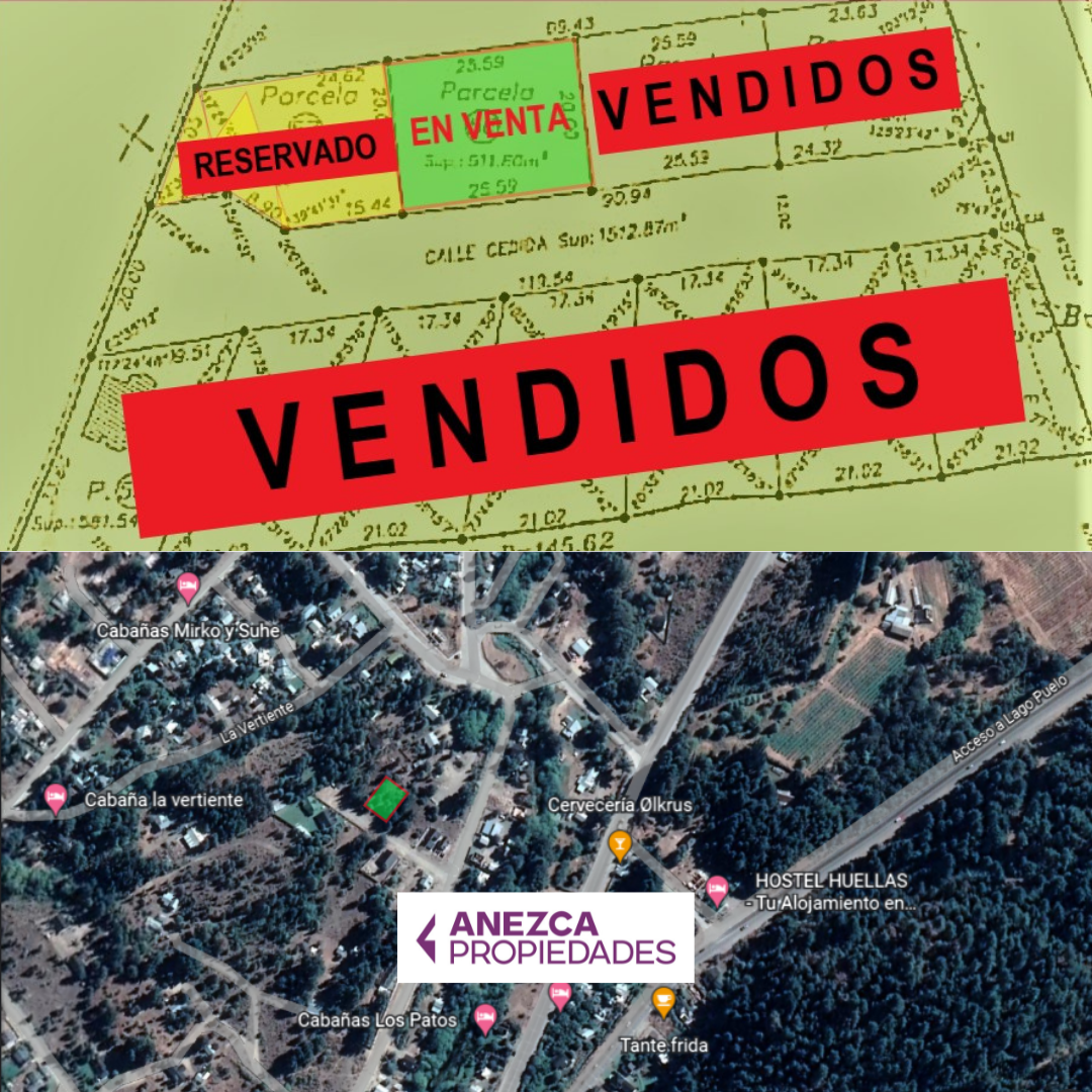 SE VENDE EN LAGO PUELO (CHT), UN EXCELENTE LOTE A POCAS CUADRAS DEL CENTRO, IDEAL PARA VIVIENDA FAMILIAR O CONSTRUCCIÓN DE CABAÑAS PARA ALQUILER TURÍSTICO.