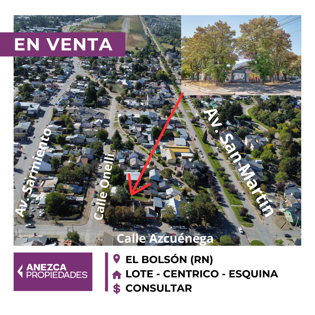 Se vende unos de los últimos y pocos lotes 232.5 m2, baldíos, en esquina y en pleno centro de El Bolsón. Zona comercial.