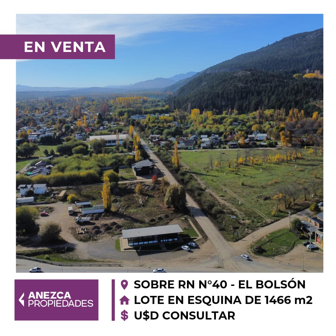 INMEJORABLE LOTE EN ESQUINA, SOBRE RUTA NACIONAL N° 40 Y ESQUINA PASTORINO, FRENTE A "LA ANÓNIMA", "EL TODO" Y A LA OFICINA DE TURISMO DE EL BOLSÓN.