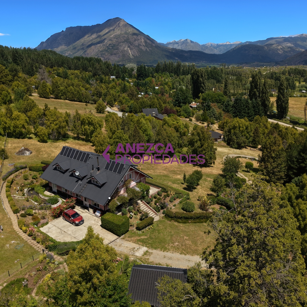 Se vende casa de 5 ambientes en Las Golondrinas, Lago Puelo, Chubut. Un hogar listo para mudarte y disfrutar: Cuenta con cochera para 2 autos, todos los servicios (Luz, Agua, Gas Natural) y un parque que despierta los sentidos, con varios arboles de la zona, frutales, un pequeño estanque de agua y un tanque australiano.